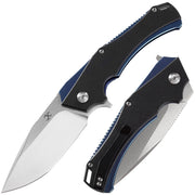 - Ergonomic two-tone black G10 and anodized dark blue stainless steel handle for a smooth gripping surface that is comfortable in the pocket or hand.