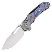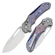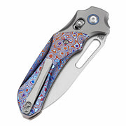 KANSEPT Quasar Cross Bar Lock Stonewashed Titanium and Timascus Handle (3.38" CPM 20CV Blade) with Munko Knives Design-K1099V4
