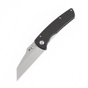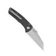The Kansept Main Street, designed by Dirk Pinkerton, is a budget-friendly pocket knife that is enough for utility tasks. The blade has a reverse tanto shape that pierces and slices with ease. This one has a carbon fiber handle and a stonewashed 154CM blade.
