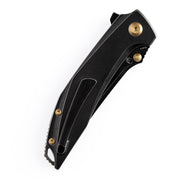 Baku, named after the mythological Japanese spirit that devours nightmares, is a slim and lightweight EDC folding knife with multiple deployment methods. It combines the classic Persian style with the Japanese Tanto design, making it suitable for both casual wear and formal attire. Baku exudes a functional style that is simply irresistible to knife collectors. The blade's high-quality steel and the titanium-based handle combine seamlessly. The handle is mainly titanium, combined with the Micarta and other materials, beautiful and practical.