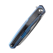 - Blue anodized Titanium and black Micarta handle.