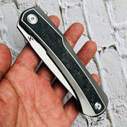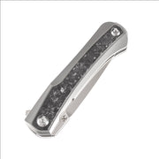 - Ergonomic titanium handle with shred carbon fiber inlays for a smooth gripping surface that is comfortable in the pocket or hand.