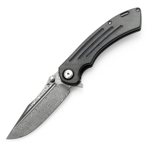 View full detailsKANSEPT Pretatout Thumb Stub Flipper Carbon Fiber and G10 Handle (3.56ā Damascus Blade) with Kmaxrom Design-K1032D3