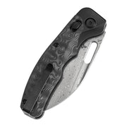 KANSEPT Vivid Cross Bar Lock Blackwash Titanium with Rose Pattern Carbon Fiber(3.04'' Damascus Blade) Jacob Lundquist Designed-K1094V1