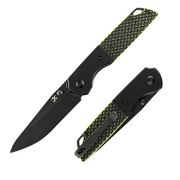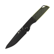 ✔Black Anodized Aluminum Bolster + Black and Green G10 handle for a smooth gripping surface that is comfortable in the pocket or hand.
