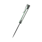 Rolf came up with the designs for the Foosa and the Weasel because he wanted to return to a time when the knife was a simple, common sense cutting tool. The Weasel uses a more modern handle design along with a similar classic blade type which is modest, ergonomic, and extraordinary functional. It is a clean and sleek design by Rolf Helbig . Model X2020T5 is built with a black TiCn coated 154CM tanto blade and green g10 handle with snowflake print.The 154CM blade provides a reliable edge that delivers solid cutting performance in outdoor and urban environments alike. The Ball Bearing system provides smooth opening.