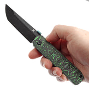 KANSEPT BTF Thumb Disc Knife Grass Green Carbon Fiber Handle (3.24'' CPM-S35VN Blade)Rolf Helbig-K1064A2
