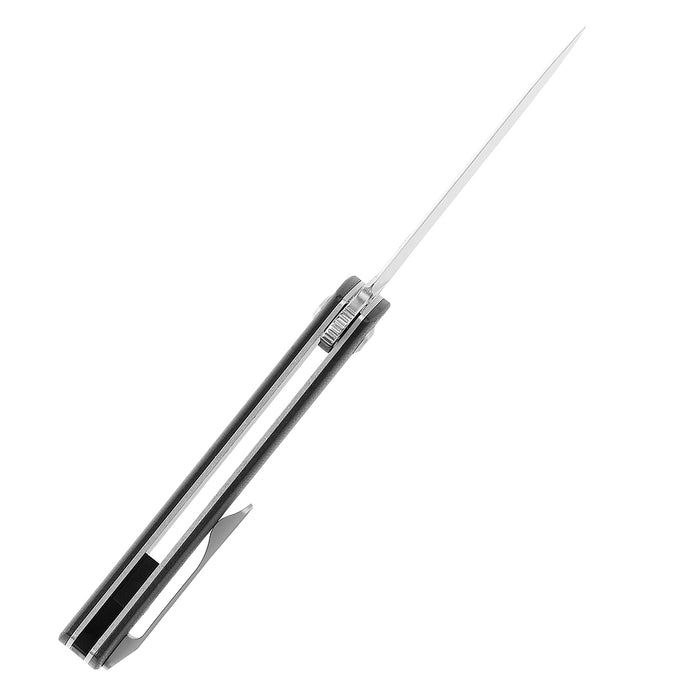 - Black G10 handle for a smooth gripping surface that is comfortable in the pocket or hand.