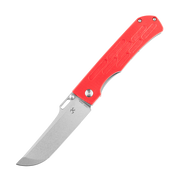 - Red G10 handle for a smooth gripping surface that is comfortable in the pocket or hand.