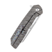 The Shard is made from premium CPM-S35VN stainless steel with a flipper opener and elongated thumb hole to accommodate easy ambidextrous deployment.The contoured frame lock handle is  maximized strength and durability. It features a 3D milled titanium pocket clip for both aesthetics and easy carry.