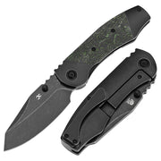 KANSEPT Caveman Thumb Stub Blackwash Titanium with Jungle Wear Fatcarbon Handle (3.57" CPM 20CV Blade) with Jesse Pauley Design-K1110B2