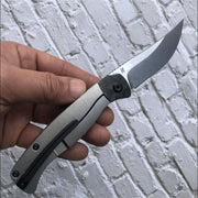 KANSEPT Mujir Front Flipper Knife Orange Peel Titanium with Carbon Fiber Inlay Handle (3.3''CPM-S35VN Blade) Dirk Pinkerton Design-K1014A2