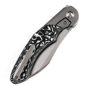 - Titanium + White Black Nebula Carbon Fiber handle for smooth gripping surface that is comfortable in the pocket or handle.