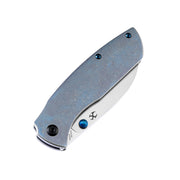 The Kansept Convict designed by Sheepdog Knives is a stout and burly design for all tasks . Model K1023A3 is built with a stonewashed premium S35VN sheepfoot blade and blue anodized titanium handle.Ā