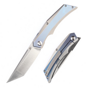 Kansept Knife Naska Satin CPM-S35VN Tanto Blade Blue Anodized and Plain Titanium Handle with APK Designs- K1035T3
