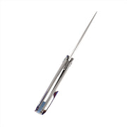 - Ergonomic titanium handle with timascus inlay for a smooth gripping surface that is comfortable in the pocket or hand.
