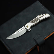 KANSEPT Orion Limited Version Flipper Bronze Anodized and Machine Satin Titanium Handle (3.07" Machine Satin CPM S35VN with CNC Milling Blade) JB Stout Design-K1089B3