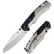 KANSEPT Weim Thumb Studs Knife Blue Carbon Fiber+Plian Titanium Handle (3.28''CPM S35VN Blade)Jonathan Styles Design-K1051A4
