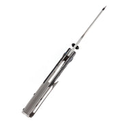- Combined with its dual thumb stud deployment for quick opening and caged ball bearing system, the knife has a quick strike action and a well-adjusted brake.