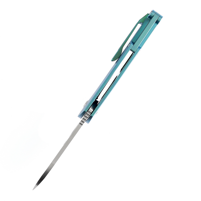 - Green Anodized Orange Peel Titanium handle for a smooth gripping surface that is comfortable in the pocket or hand.