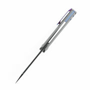 ✔Gray Anodized Titanium Handle + Timascus Clip handle for a smooth gripping surface that is comfortable in the pocket or hand.