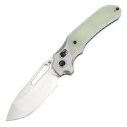 KANSEPT Quasar Cross Bar Lock Jade G10 Handle (3.38" 154CM Blade) with Munko Knives Design-T1099V1