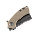 - Compact light sand G10 handle for a smooth gripping surface that is comfortable in the pocket or hand.