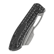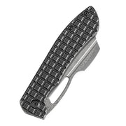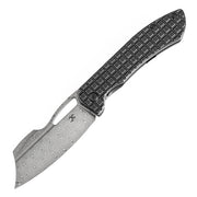 KANSEPT Cybin Thumb Hole Blackwash Titanium with Frag Pattern Handle (3.29''Damascus Blade ) Edgy Bladeworks Design -K1080A2