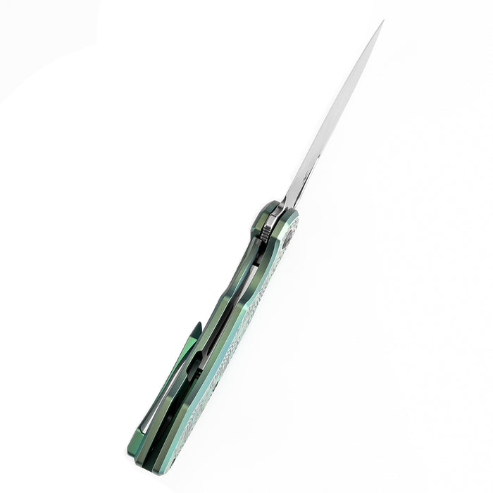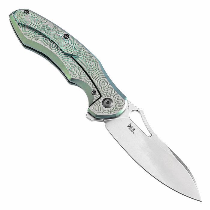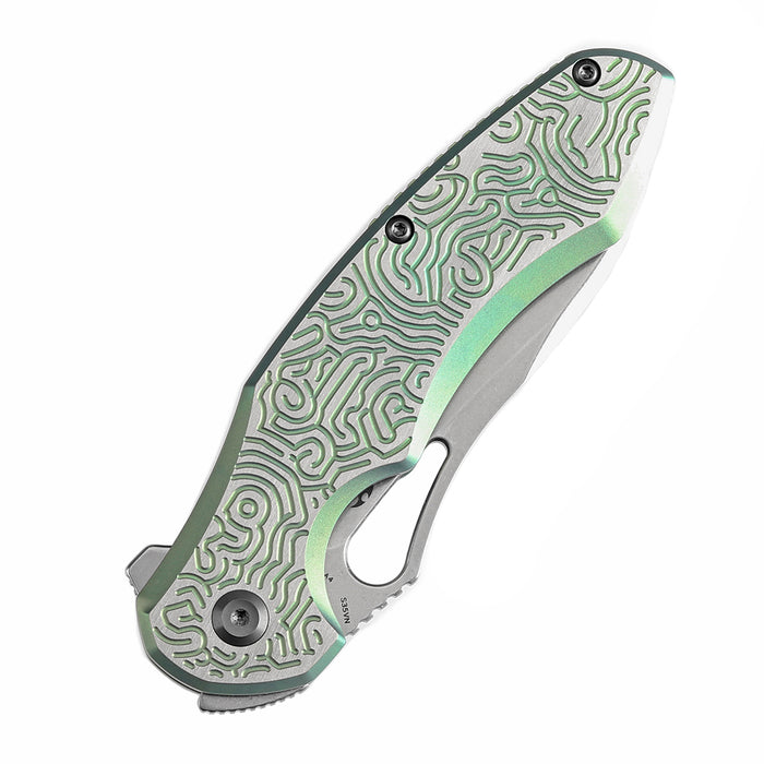 KANSEPT Echis Thumb Hole Green Anodized Textured Titanium Handle (3.45''CPM S35VN Blade ) Djinn Design -K1071A4