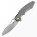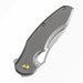 The internal milling on the taitanium handle make it lightweight and the attractive textured pattern and the crowned spine design on the blade enhance grip and comfort during use.