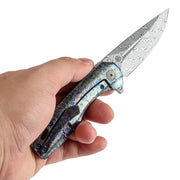 KANSEPT Cassowary Flipper Knife Titanium with Lightning Strike Finish Handle (2.9'' Damascus Blade) Koch Tools -K2065A3