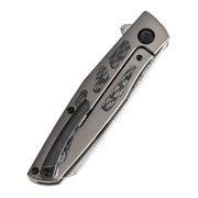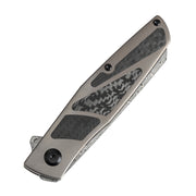 KANSEPT Cru Flipper Knife Bronze Anodized Titanium & Twill Carbon Fiber Handle(3.46''Damascus Blade) Villella Knives Design-K1092A4