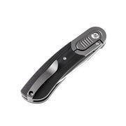 • Ergonomic black G10 handle with titanium bolster for a smooth gripping surface that is comfortable in the pocket or hand.