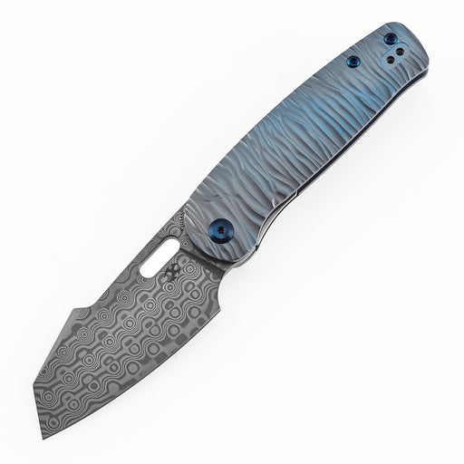 View full detailsKANSEPT Orlok Thumb Hole Blue Anodized Titanium with Micro Rock Texture(3.03" Damascus) Terry Cour II Design- K2111A5