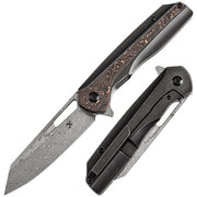 KANSEPT Shard K1006C2 Damascus Blade Blackwashed Titanium and Copper Carbon Fiber Handle With Kim Ning Design