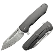 KANSEPT Superhawk Flipper Knife Blackwash Titanium Handle(3.89''Damascus Blade) Warhawk Knives Design-K1084A3