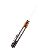 - Orange G10 + Titanium Inlay handle with titanium inlay for a smooth gripping surface that is comfortable in the pocket or hand.