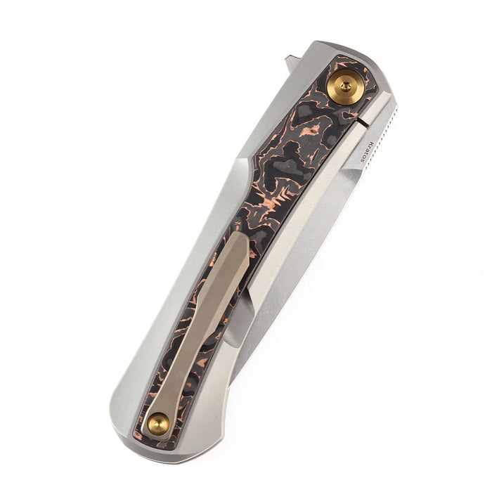 KANSEPT Kratos Flipper Knife Titanium + Copper Carbon Fiber Inlay Handle (3.79"CPM-S35VN Blade)Ostap Hel Design-K1024A7