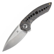 -The Odd 21 folding knife boasts a handle crafted from titanium, featuring gently curved lines that conform perfectly to the palm. With handle access on both sides, the grip is enhanced for greater comfort and security. The hole design not only enhances aesthetics but also improves traction, ensuring a dependable hold during use. This ergonomic design marries style and functionality for a satisfying handling experience.