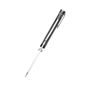 The K1005T6 Warrior is a slim EDC flipper knife designed by Kim Ning. This model sports a stonewashed drop point blade made from CPM-S35VN stainless steel. Its titanium frame lock handle is outfitted with a patterned carbon fiber inlay and a titanium bead balsted backspacer. A secure titanium pocket clip and ultra thin profile allows comfortable daily carry.