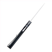 The Hellx is a Tactical knife with attunement and elegance. The Hellx T1008A1 is a budget-friendly version of the CPM-S35VN one. It is build with a stonewashed D2 blade and a two-tone handle with black G10 and anodized dark blue stainless steel inlay.It's a hard user with a ergonomic grip and size that makes it your perfect Tactical choice.