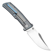 The Bison was designed as a folding Bowie-style knife, combining the classic lines of a clip point blade with a more modern-inspired handle. This design marks a departure from Ray Laconico’s usual minimalist and elegant style, venturing into a new direction with a bold and functional approach. The Bison's robust Bowie blade brings the iconic strength and versatility associated with traditional Bowie knives, while the sleek, contemporary handle offers ergonomic comfort and modern aesthetics. The knife’s unique design balances classic utility with innovative craftsmanship, making it both a powerful tool and a striking collector's piece.