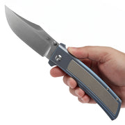 The handle is crafted from titanium, with chamfered edges for a comfortable grip. It also incorporates a dual surface treatment design, enhancing both aesthetics and functionality. The top of the handle includes a cross guard, which effectively prevents the hand from slipping onto the blade during use.
