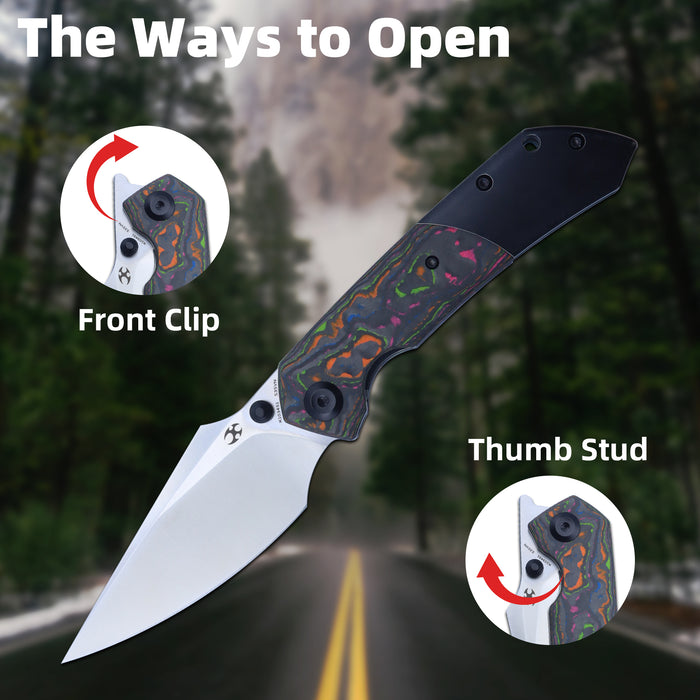 KANSEPT Fenrir Front Flipper/Thumb Stud Knife Blackwash Titanium and 80S Carbon Fiber Handle (3.48''CPM-S35VN Blade) Greg Schob Design -K1034S1
