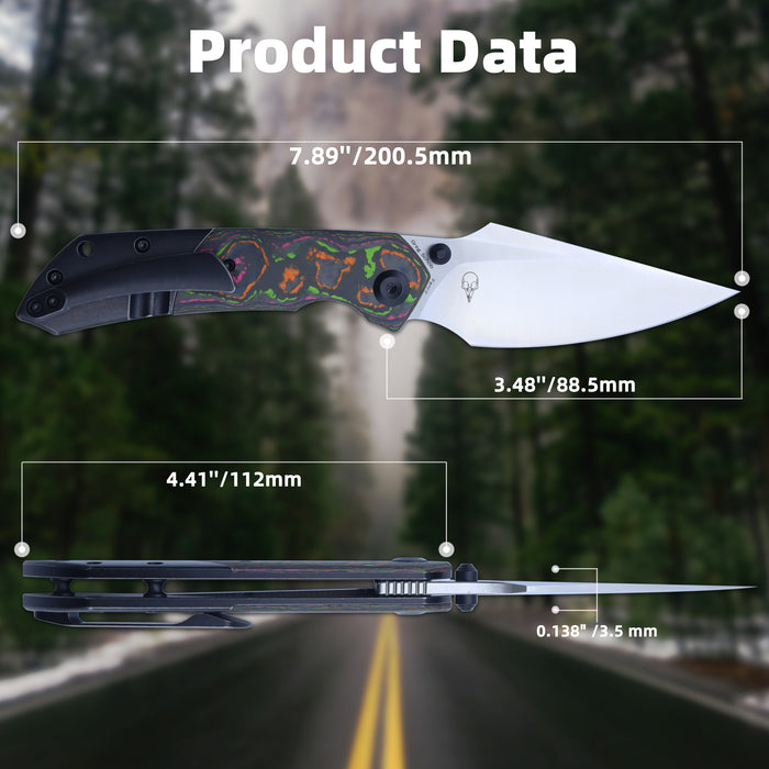✔Blackwash Titanium + 80S Carbon Fiber handle for a smooth gripping surface that is comfortable in the pocket or hand.