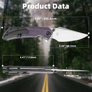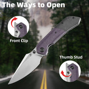 KANSEPT Fenrir Front Flipper/Thumb Stud Knife Blackwash Titanium and Purple Micarta Handle (3.48''CPM-S35VN Blade) Greg Schob Design -K1034Z1