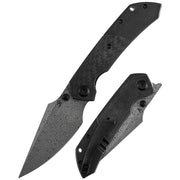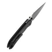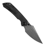 KANSEPT Fenrir Liner Lock Blackwash Titanium & Twill Carbon Fiber with G10 Handle (3.48'' DamascusBlade) Sparrow Knife Designed- K1034D1