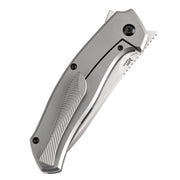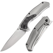 The handle is crafted from 6al4v titanium, carbon fiber, and Timascus, featuring internal milling in the 6al4v Titanium frame for an exceptionally lightweight build.The wave millings on show side and titanium pocket clip add both visual interest and improved grip.