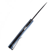 KANSEPT Hellx Button Lock Blue Micarta Handle (3.6''D2 Blade )Mikkel Willumsen Design -T1008F3