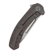 KANSEPT Hira Flipper Tiger Stripe Flamed Titanium Handle (3.46" Damascus Blade) with Marco Knives Design-K1090A5